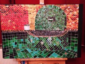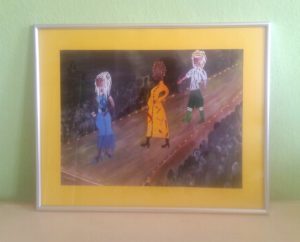 Bei der Technik meiner Collagen geht es um die Verwertung von unbrauchbaren Fotografien. Sie ist in dieser Art einmalig und findet nicht nur in Deutschland Anklang. Je nach Zusammensetzung von Farben und geometrischen Figuren entstehen die Effekte meiner Gesamtwerke. Der Laufsteg ist mit Acryl gemalt.